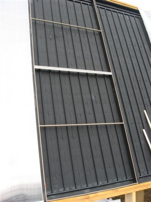 You used OSB for the back of your big collector. No worry about that holding up over time with the weather? It really doesn’t see any significant amount of moisture, being somewhat inverted. I assume you painted the back? I actually sealed it with a good grade of stain, and intend to restain it every few years. Same for the outside framework.